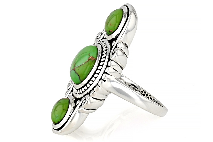Southwest Style by JTV™ Green Turquoise Sterling Silver 3-Stone Ring - Size 9