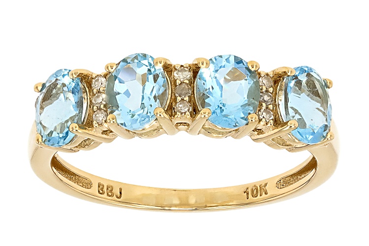 1.00ctw Santa Maria Aquamarine With 0.07ctw White Diamond 10k Yellow Gold Ring - Size 9
