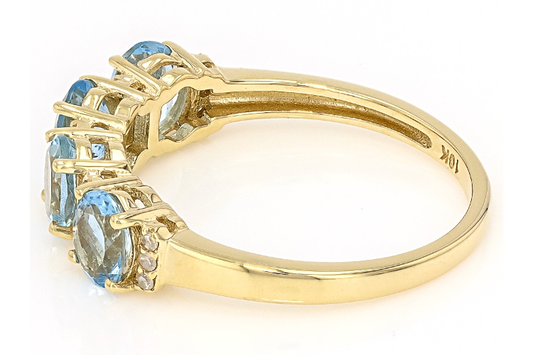1.00ctw Oval Santa Maria Aquamarine With 0.07ctw Round White Diamond 10k Yellow Gold Ring. Measures Approximately 0.79"L x 0.20"W.