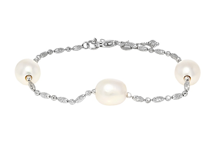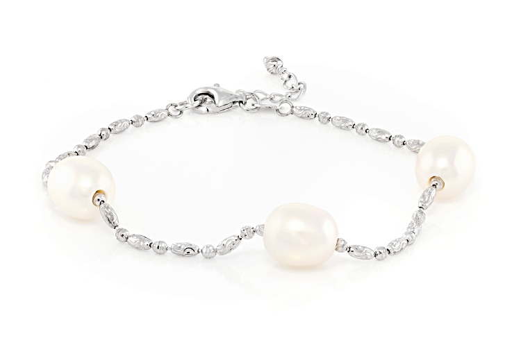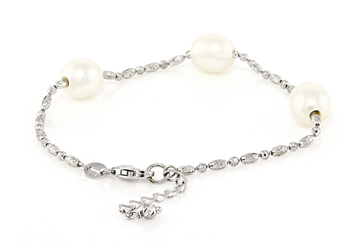 9mm White Cultured Freshwater Pearl Rhodium Over Sterling Silver Bracelet