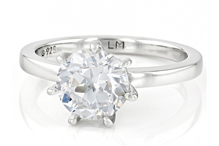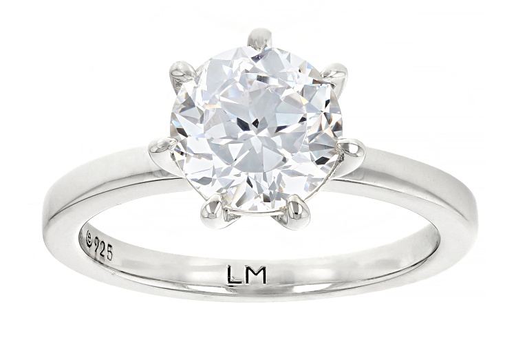Lisa Mason for Bella Luce® white diamond simulant 3.46ctw round, platinum over sterling silver perfect cut ring. Measures approximately 0.81" L x 0.31" W and is not sizable. The diamond equivalent weight is 2.09ctw.