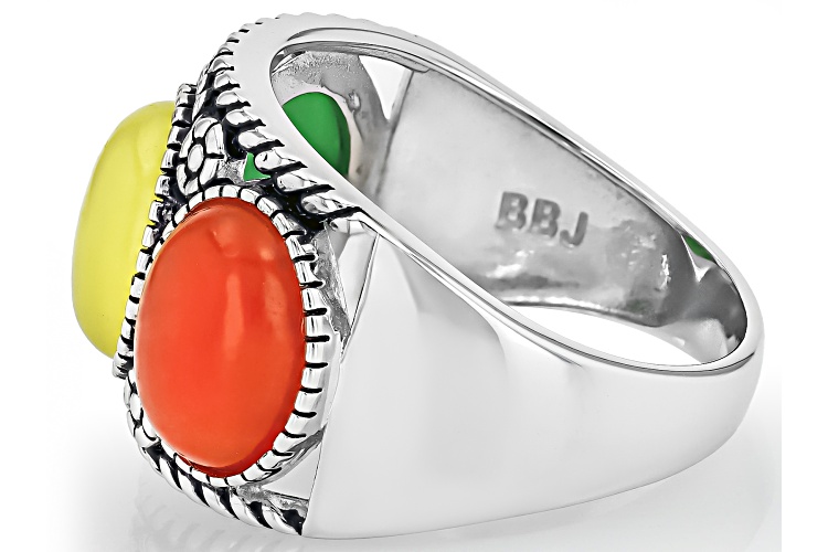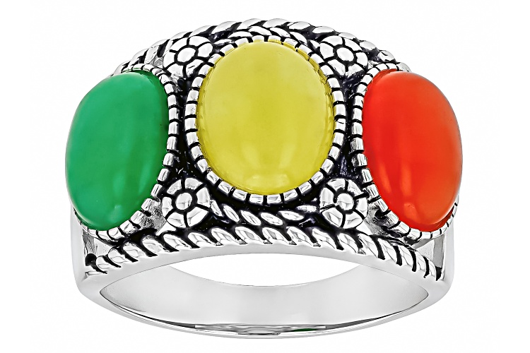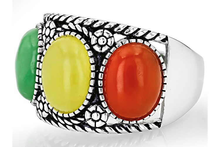 Southwest Style by JTV™ Multi-Color Jadeite Rhodium Over Sterling Silver Ring - Size 7