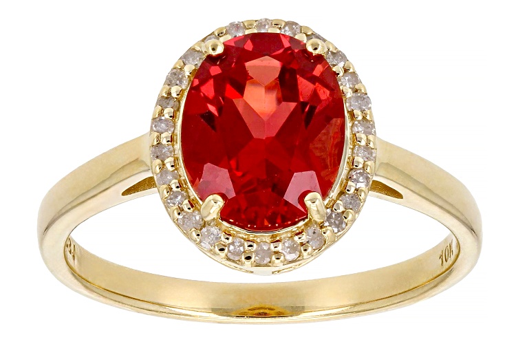 • 2.25ct Lab Created Padparadscha Sapphire With 0.11ctw White Diamond 10k Yellow Gold Ring - Size 6