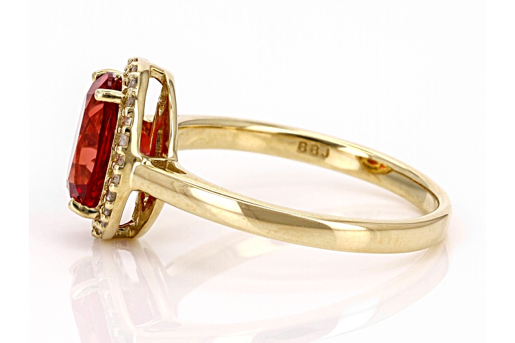 2.25ct Lab Created Padparadscha Sapphire With 0.11ctw White Diamond 10k Yellow Gold Ring - Size 6