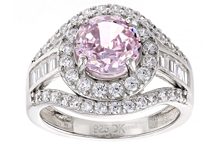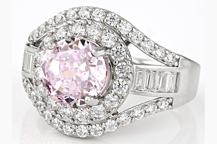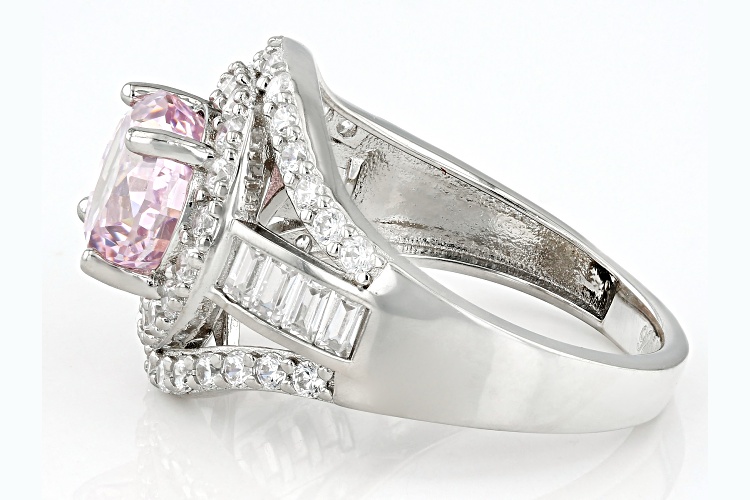 Bella Luce® pink and white diamond simulants 9.37ctw round and baguette, platinum over sterling silver ring. Measure approximately 0.81" L x 0.63" W and is not sizeable. The diamond equivalent weight is 5.67ctw.