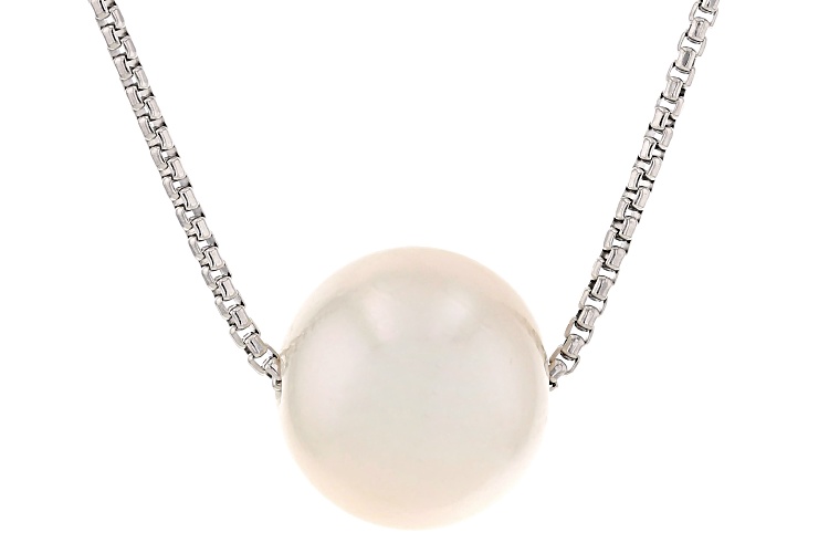 Genusis™ 10.5mm White Cultured Freshwater Pearl Rhodium Over Sterling Silver Necklace. Measures approximately 16 inches in length with a 2 inch extender and 1/2 of an inch in width with a lobster claw clasp closure. Can be worn at 16" or 18" length. Colors, shapes, and sizes may vary.