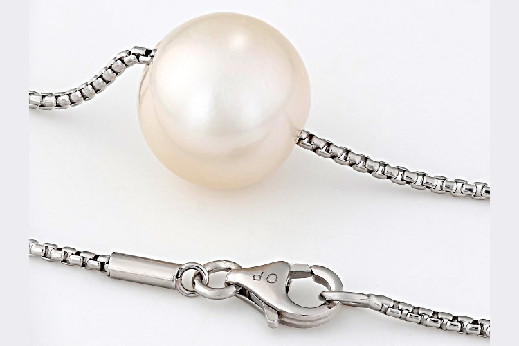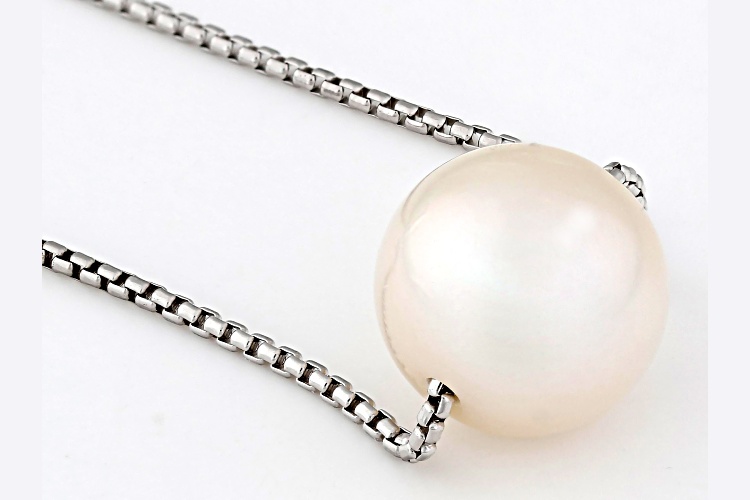 Genusis™ 10.5mm White Cultured Freshwater Pearl Rhodium Over Sterling Silver Necklace - Size 18