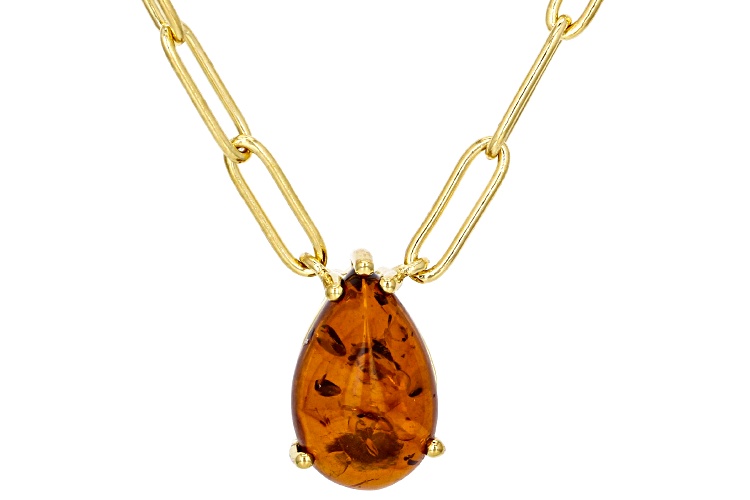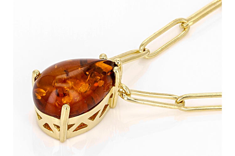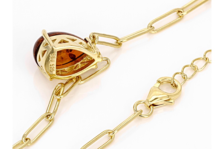 14x9mm Pear Amber 18k Yellow Gold Over Sterling Silver Paperclip Link Necklace. Measures Approximately 0.72"L x 0.35"W. Lobster Claw Clasp. 2" Extender.