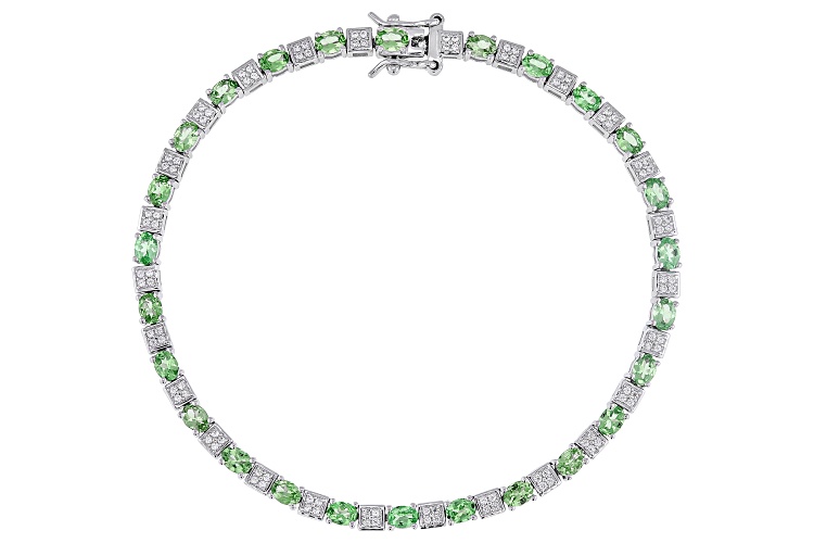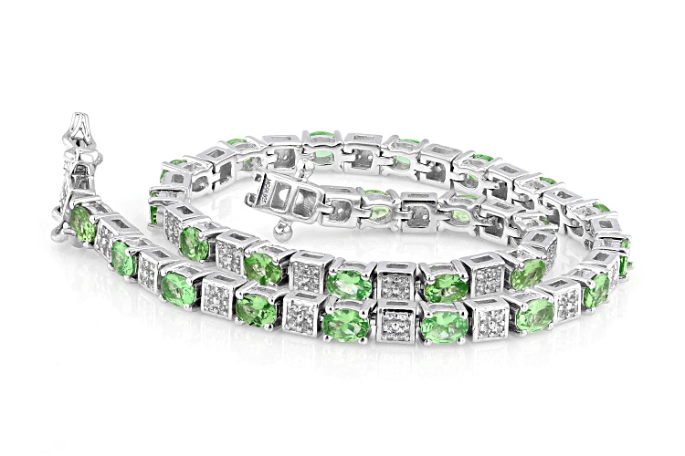 4.27ctw Mint Tsavorite with 1.087ctw White Zircon Rhodium Over Sterling Silver Bracelet - Size 8
