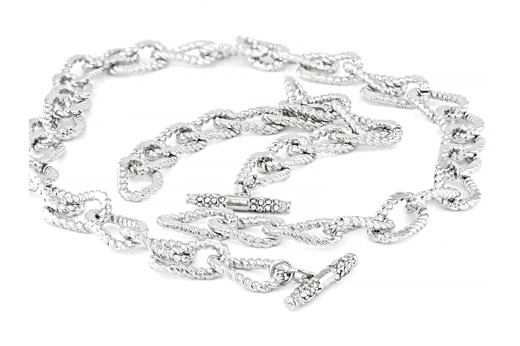 Introducing the dazzling Crystal Silver Tone Link Necklace & Bracelet Set from Off Park ®Collection! This stunning jewelry set is a playful addition to your ensemble, adding a touch of elegance and charm. The shimmering crystals paired with the radiant gold tone create an eye-catching look that will surely turn heads wherever you go. With this matching necklace and bracelet duo, you can easily elevate any outfit effortlessly. Perfect for those who love to add some sparkle into their lives! Let your style shine bright like these beautiful crystal pieces.Dimensions: Necklace Length - 18 inches in length and 0.45 inches in width. Bracelet Length - 7 inches in length and 0.42 inches in width.Closure Type: Toggle closure