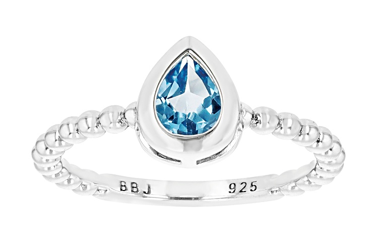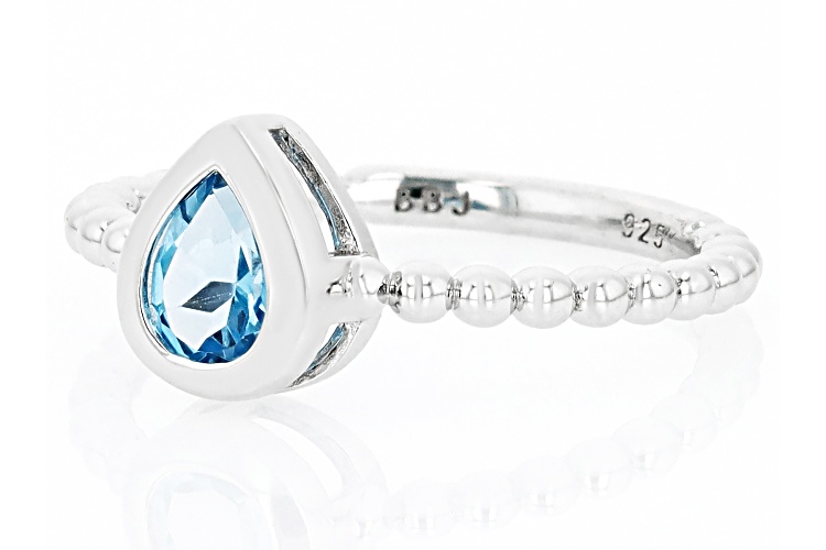 0.68ct Pear Shape Swiss Blue Topaz Rhodium Over Sterling Silver Solitaire Ring - Size 8