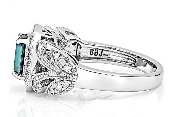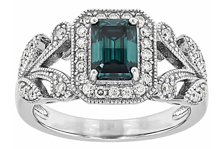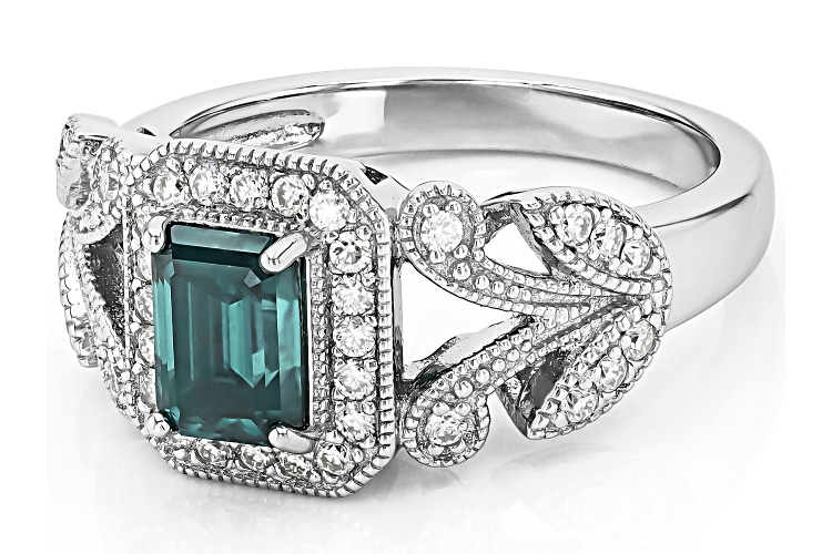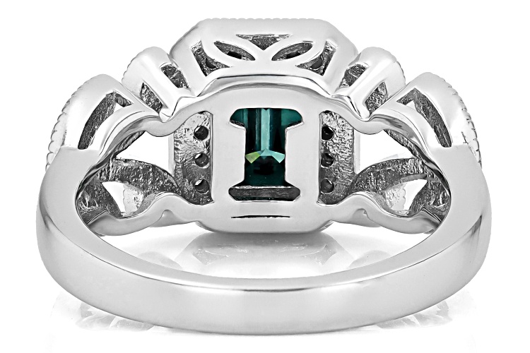 MOISSANITE FIRE® AND GREEN MOISSANITE 1.36CTW DEW EMERALD CUT AND ROUND BRILLIANT PLATINEVE® RING - Size 8
