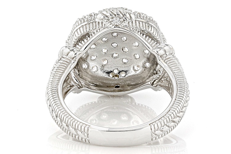 Judith Ripka 2.47ctw Round White Bella Luce® Diamond Simulant Rhodium Over Sterling Silver Fleur Epoch Ring. Measures approximately 0.85"L x 0.68"W. Not sizeable.