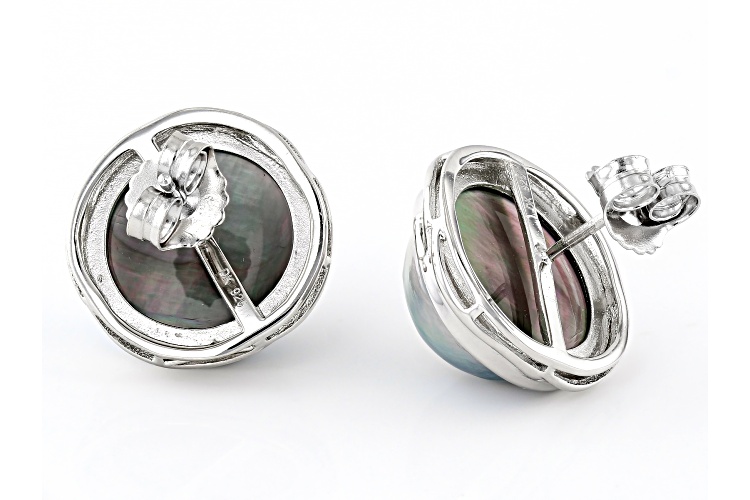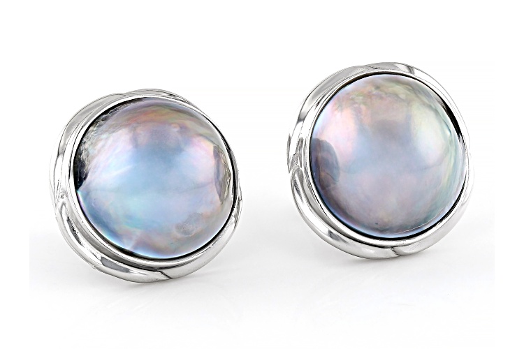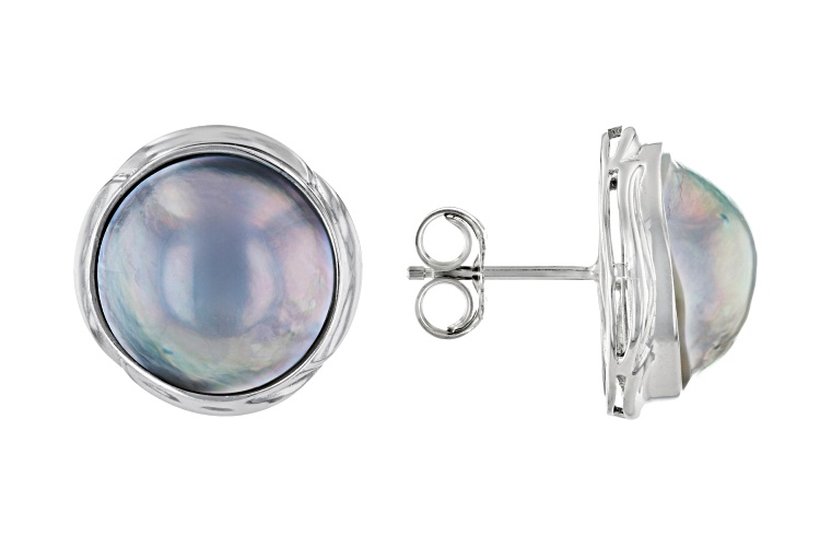 15mm Platinum Cultured South Sea Mabe Pearl Rhodium Over Sterling Silver Stud Earrings. Measure approximately 3/4" L x 3/4" W and have push back backings. Colors, shapes, and sizes may vary.