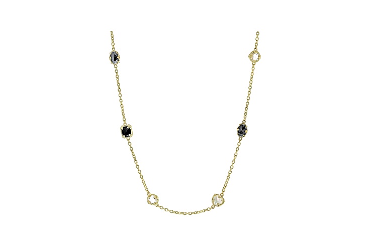 • Judith Ripka Magnetite, Black Onyx, and Rock Crystal Quartz 14k Gold Clad Ambrosia Necklace - Size 34