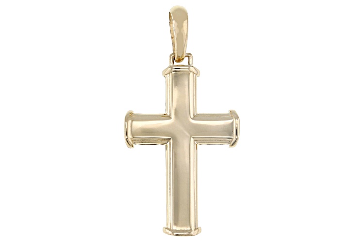 10k Yellow Gold Beveled Cross Pendant. Measures Approximately 1 1/2"L x 3/4"W and 5mm Bail.