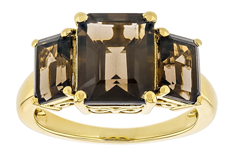 4.30ctw Smoky Quartz 18k Yellow Gold Over Sterling Silver Ring - Size 10