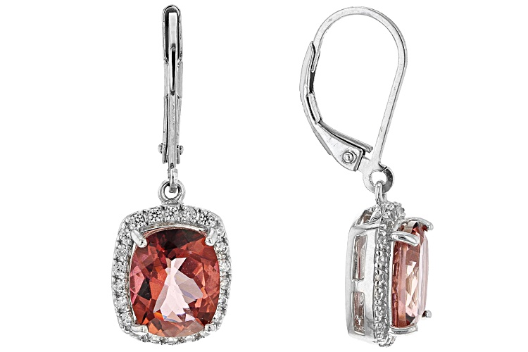 • 4.17ctw Rectangular Cushion Red Labradorite & 0.35ctw White Zircon Rhodium Over Silver Earrings