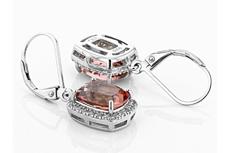 4.17ctw Rectangular Cushion Red Labradorite & 0.35ctw White Zircon Rhodium Over Silver Earrings