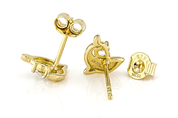 0.25ctw Round White Topaz 18k Yellow Gold Over Sterling Silver Dolphin Children's Earrings. Measures Approximately 0.34"L x 0.31"W. Pushbackings.