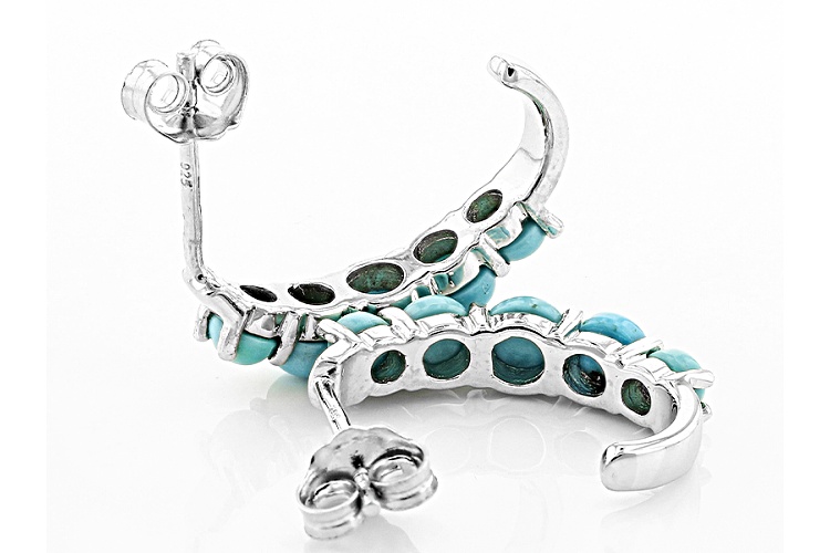 2mm round and 4mm round sleeping beauty turquoise rhodium over sterling silver. Measures approximately 3/4"L x 1/8"W. Push backings.