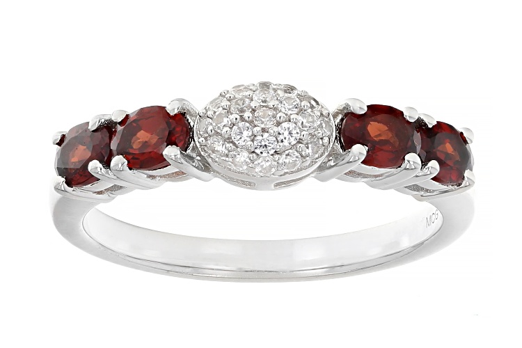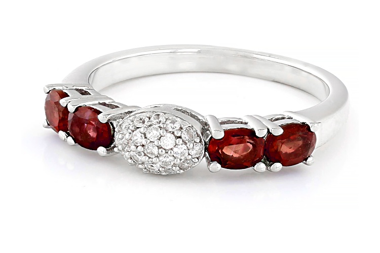 0.82ctw Oval Red Vermelho Garnet™ with 0.18ctw Round White Zircon Platinum Over Sterling Silver Ring. Measures Approximately 0.81"L x 0.18"W. Not Sizeable. Accent Stones Primarily Zircon.