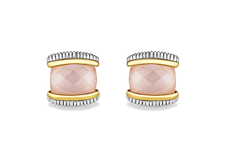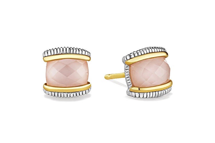 Judith Ripka Couture Eternity Rose Quartz over Pink Mother-of-Pearl Doublet 925 & 18K Gold Earrings