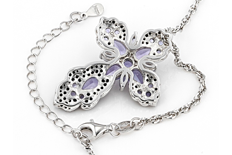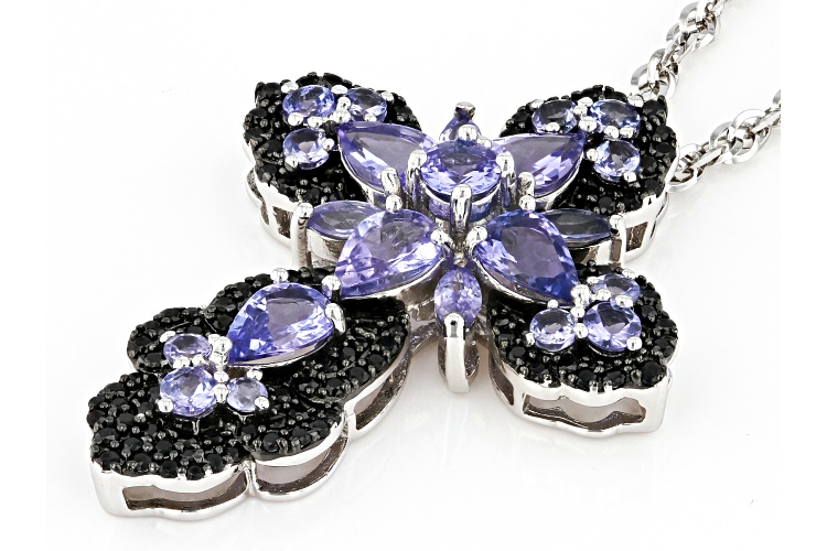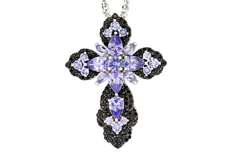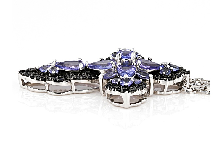 2.78ctw Tanzanite with 0.50ctw Black Spinel Rhodium Over Sterling Silver Pendant with Chain