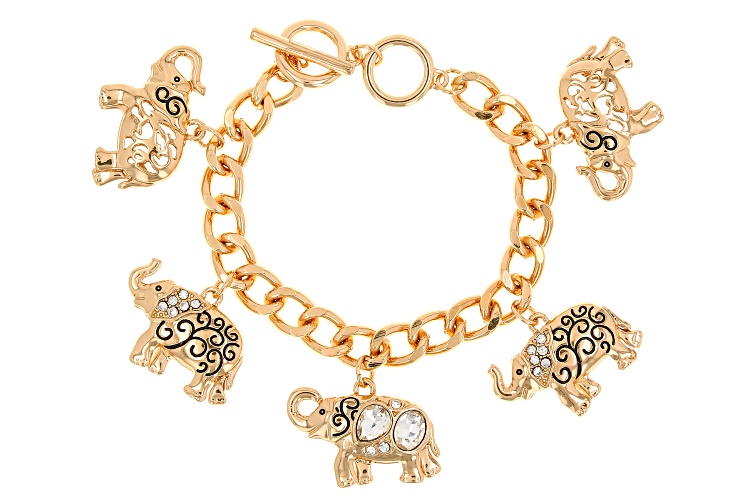 Off Park® Collection, White Crystal Gold Tone Elephant Charm Bracelet