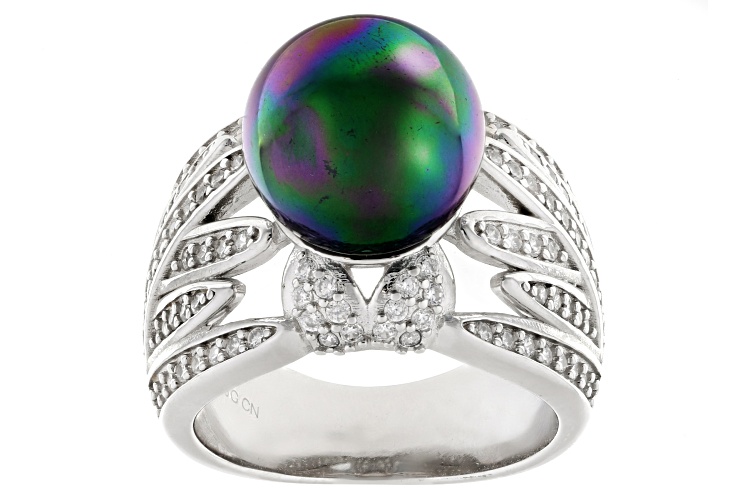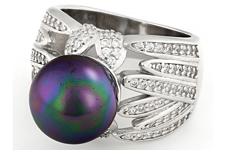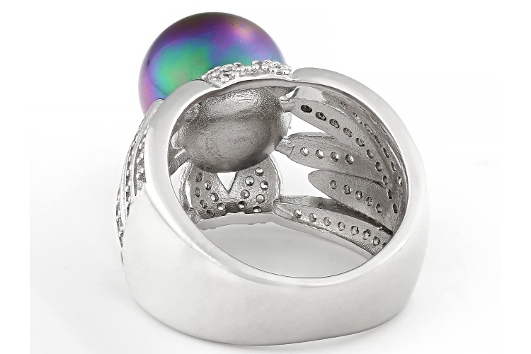 Pearlfection® 12mm Peacock Simulant And Bella Luce® Rhodium Over Sterling Silver Ring - Size 12