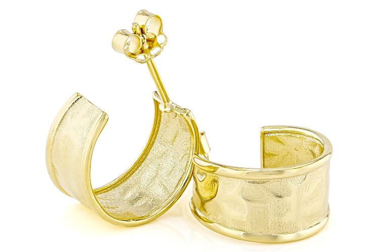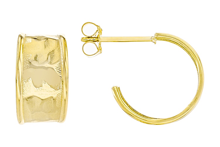 Stefano Oro® 14k Yellow Gold Etruscan Hammered J-Hoop Earrings. Measures Approximately 1/2" L x 1/2" W. Push Backings.