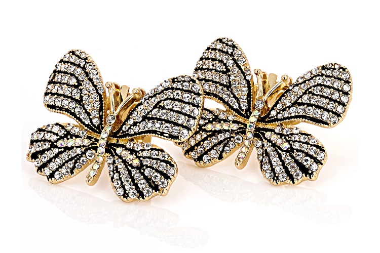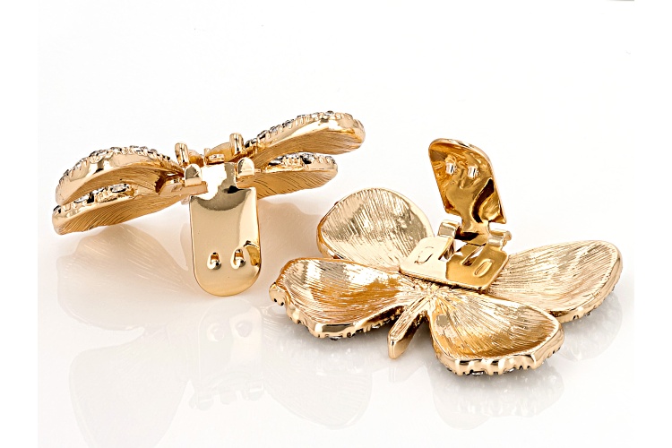 Off Park® Collection, Crystal Gold Tone Butterfly Set of 2 Shoe Clips. Measures Approximately 1.4"L x 1.82"W.