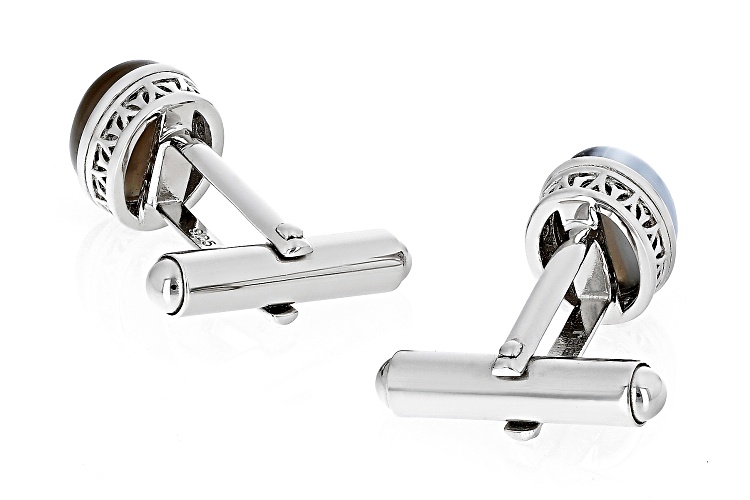 • 10x8mm Oval Cabochon Bi Color Opal Rhodium Over Sterling Silver Men's Cufflinks