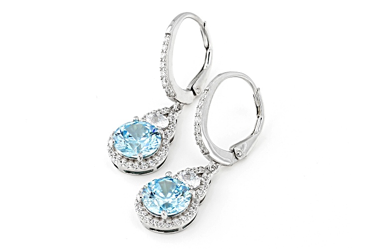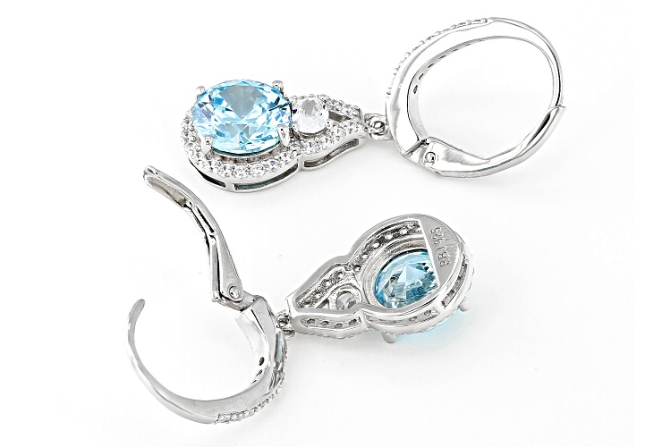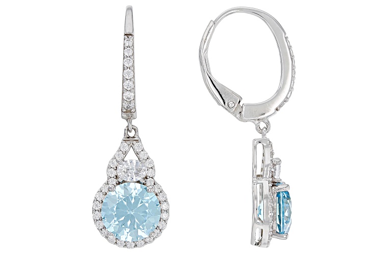 Bella Luce® aquamarine and white diamond simulants 9.03ctw round and oval, rhodium over sterling silver earrings. Measures approximately 1.25" L x 0.44" W and has leverback backings.