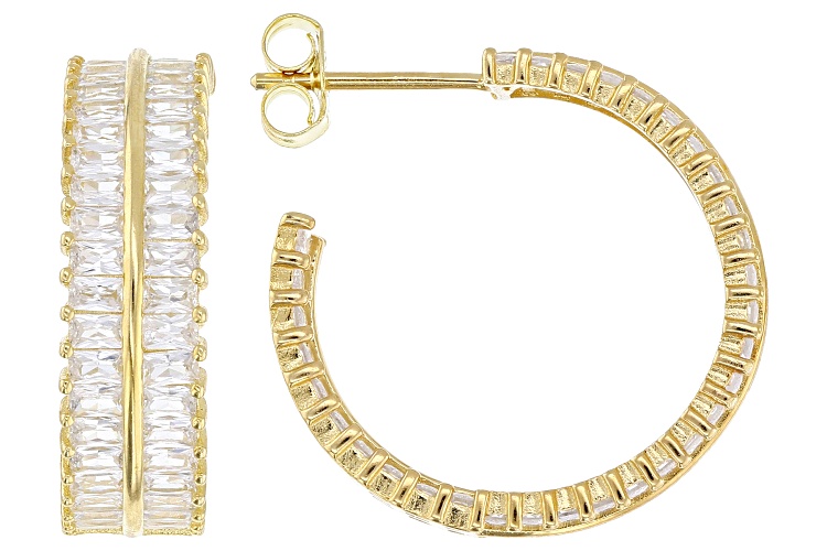 Bella Luce® 6.00ctw White Diamond Simulant Eterno™ Yellow Hoops. Measures Approximately 0.88"L x 0.25"W. Push Backings. The Diamond Equivalent Weight is 3.63ctw.