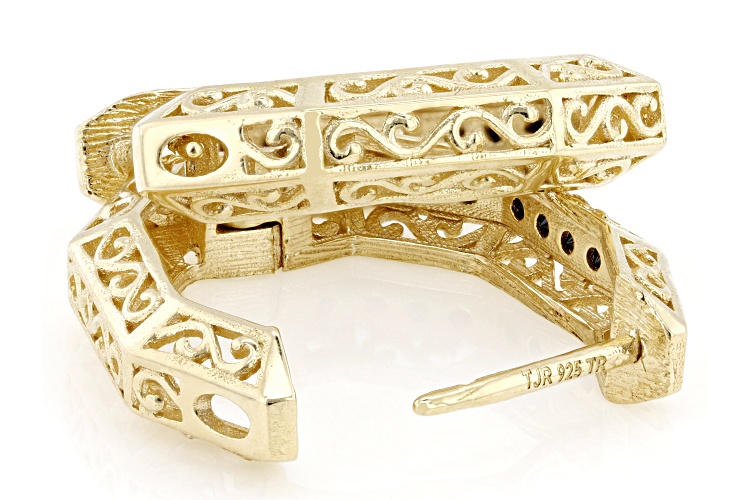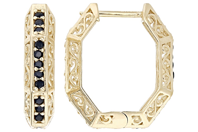 Artisan Collection of Turkey™ 0.18ctw Black Spinel 18K Gold Over Sterling Silver Heptagon Hoop Earrings. Measures Approximately 0.78"L x 0.19"W. Endless Backings.