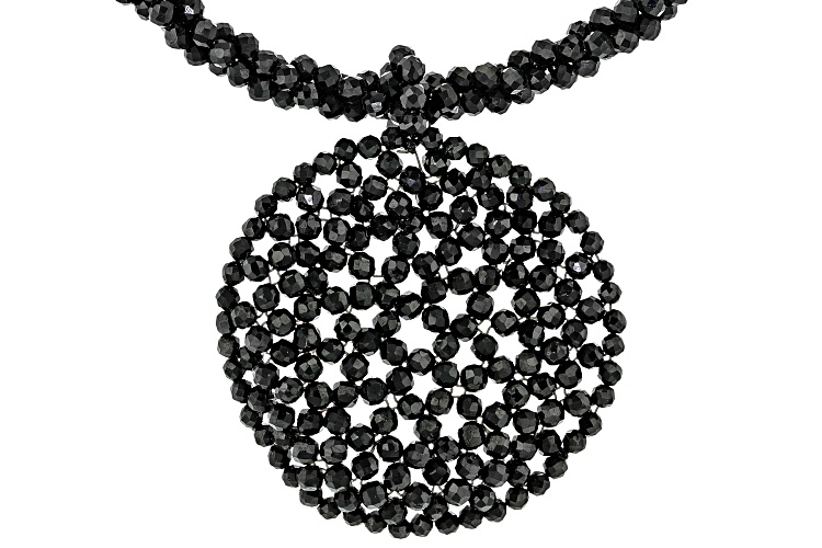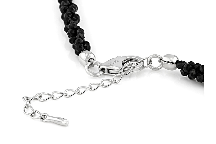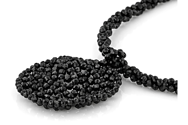 75.00ctw 2-2.5mm Rondelle Black Spinel Rhodium Over Sterling Silver Woven Lace Necklace - Size 18