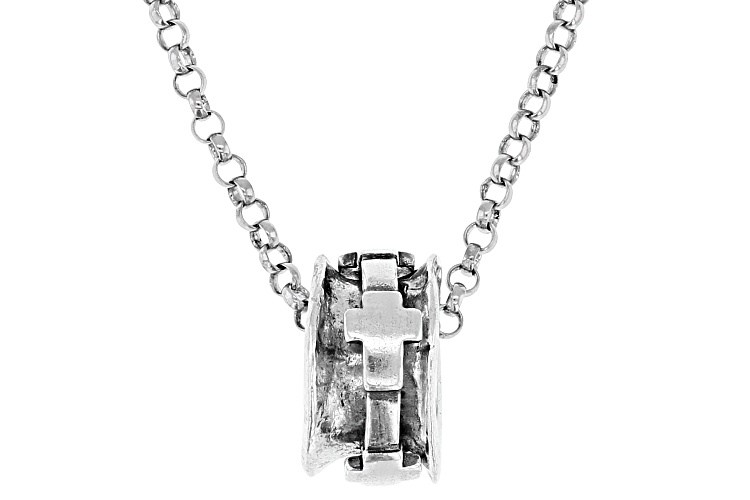Artisan Collection of Israel™ Sterling Silver Cross Spinner Pendant With 18" Rolo Chain. Measures Approximately 18"L x 0.26"W. Lobster claw Closure.
