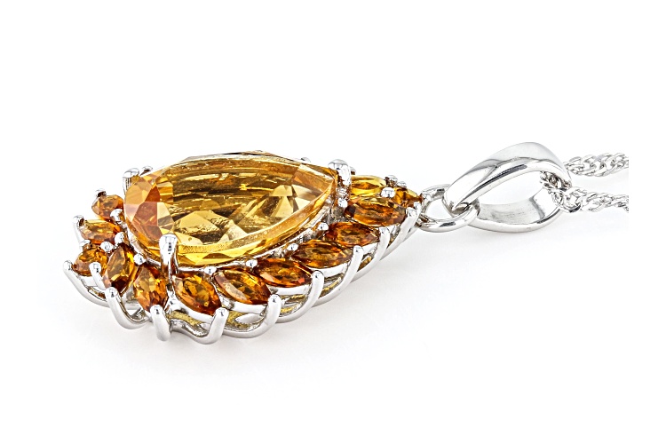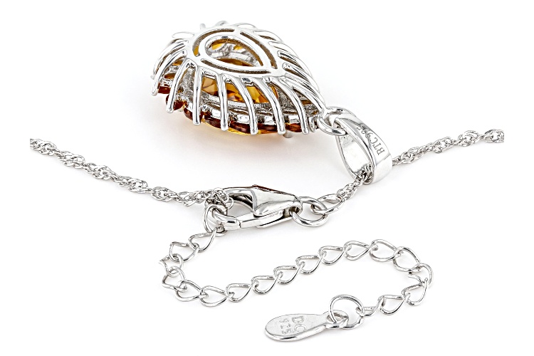• 2.55ct Pear Shape Citrine With 1.14ctw Madeira Citrine Rhodium Over Sterling Silver Pendant/Chain