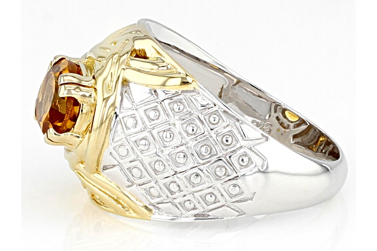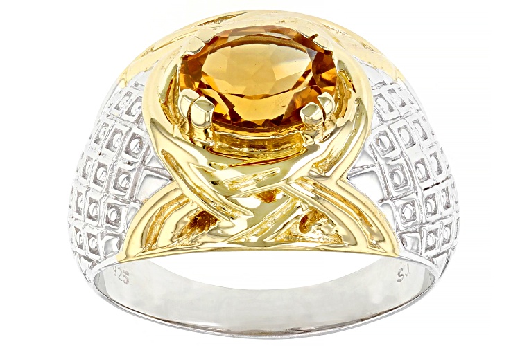 • 1.48ctw Oval Citrine Rhodium & 18k Yellow Gold Over Sterling Silver Two-Tone Men's Ring - Size 9