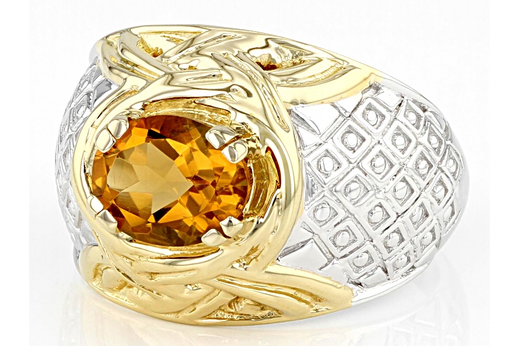 1.48ctw Oval Citrine Rhodium & 18k Yellow Gold Over Sterling Silver Two-Tone Men's Ring - Size 9
