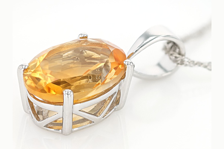 Pre-Owned 4.50ct Citrine Rhodium Over Sterling Silver Pendant With Chain