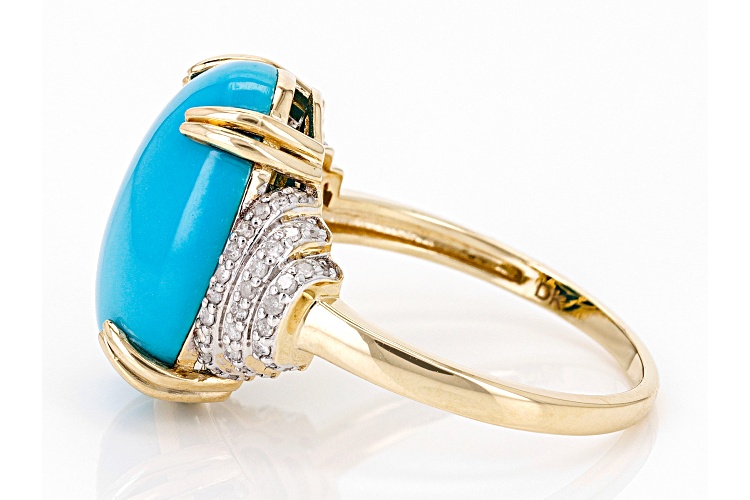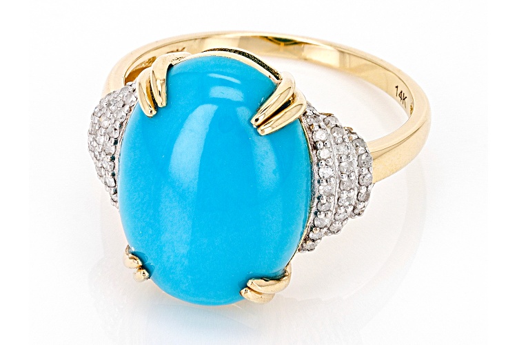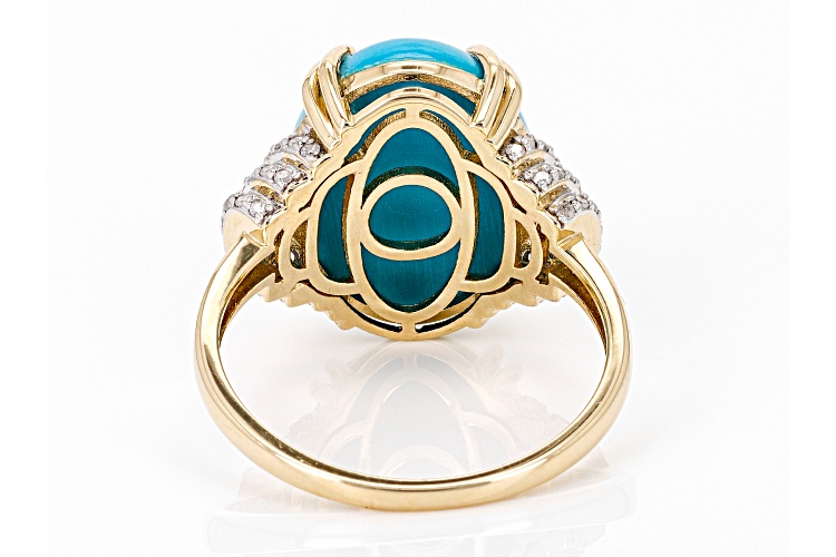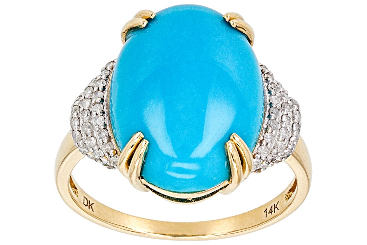 • 16x12mm Sleeping Beauty Turquoise With 0.20ctw White Diamond 14k Yellow Gold Ring - Size 6
