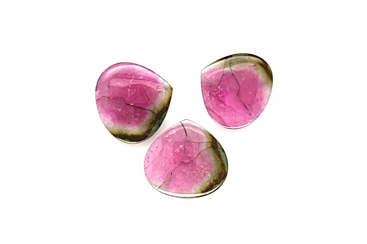 • Watermelon Tourmaline Free-Form Slice Set of 3 23.15ctw