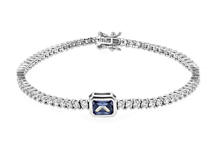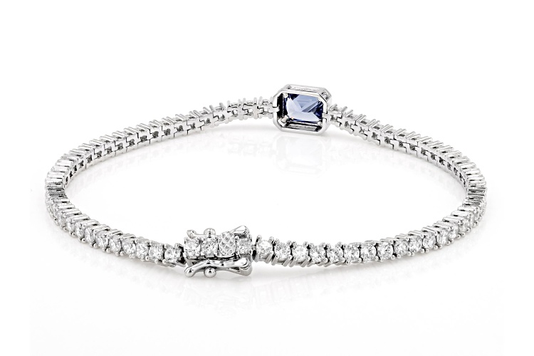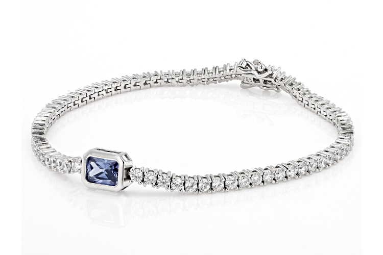 Bella Luce® Esotica™ tanzanite and white diamond simulants 8.20ctw rectangle and round, rhodium over sterling silver tennis bracelet. Measure approximately 7.25"-8* L x 0.31" W and has a hidden box clasp.
