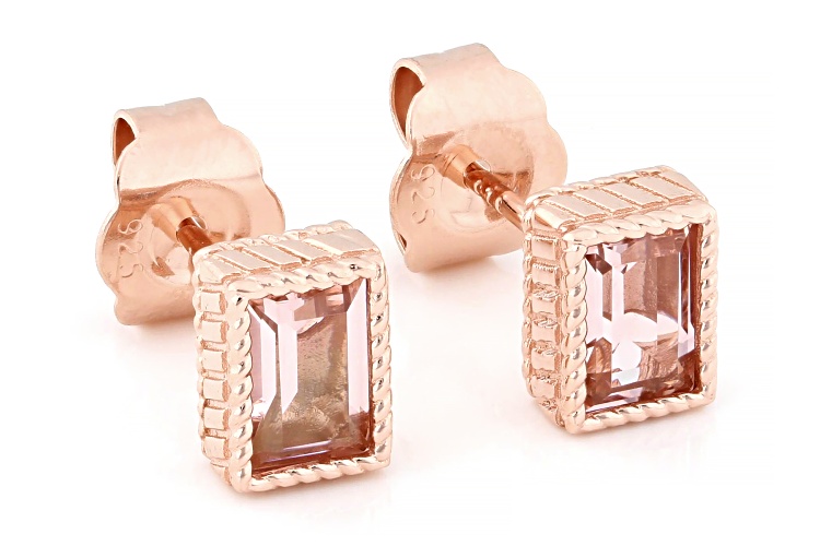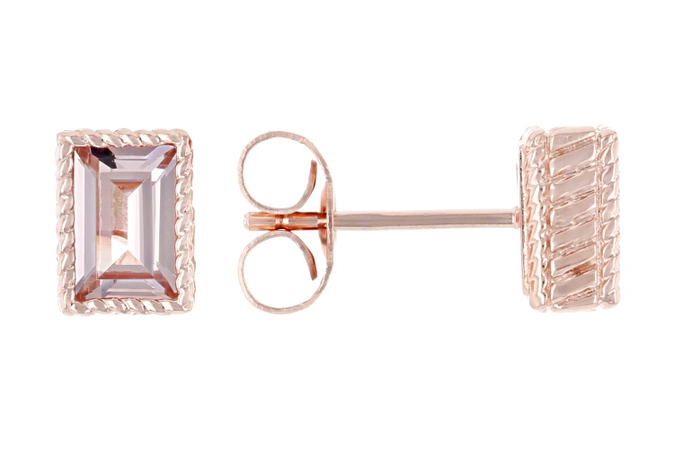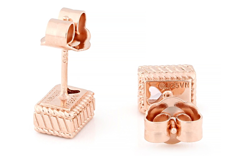 Judith Ripka 0.94ctw Morganite Simulant 14k Rose Gold Clad Princess Bezel Set Stud Earrings