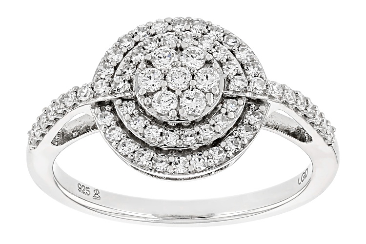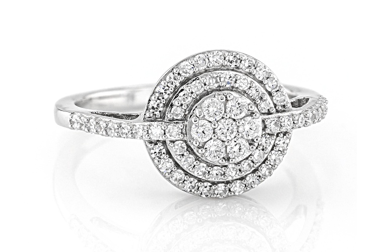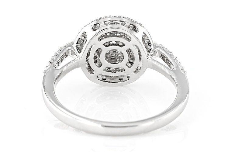 Prazana® Lab-Grown Diamonds 0.50ctw round white lab-grown diamond, rhodium over sterling silver cluster ring. Measures approximately 7/8"L x 1/2"W and is not sizeable. H color, SI clarity minimum.