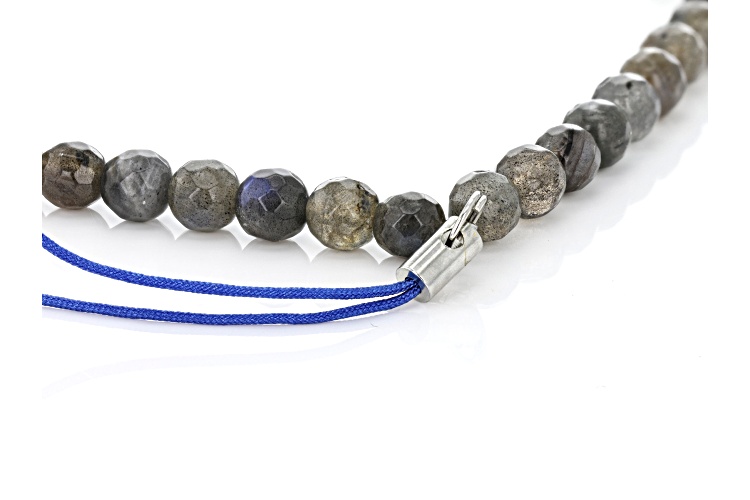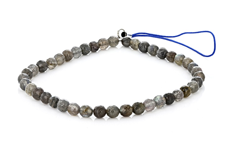 6x6mm Round Labradorite Beaded Stainless Steel Phone Wrist Strap Measures Approximately 0.26"W.