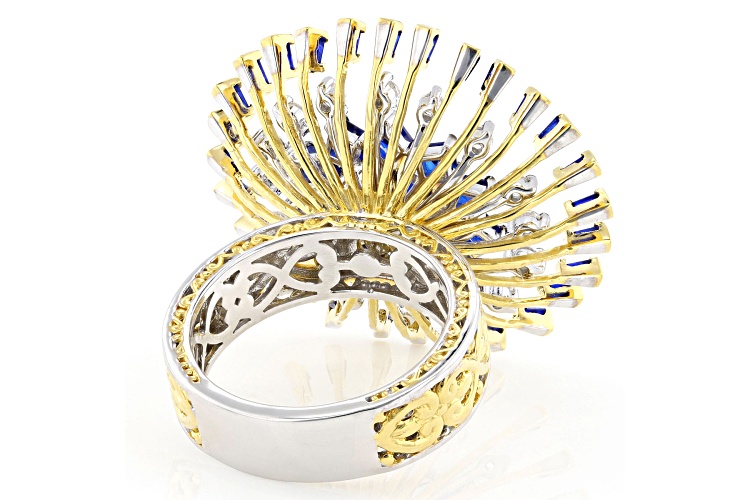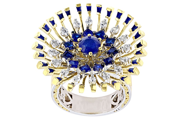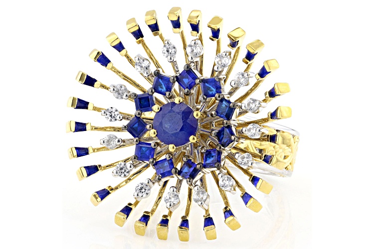 • 3.51ctw Cobalt Spinel, White Zircon Rhodium & 24K Yellow Gold Over Palladium Sterling Silver Ring - Size 6