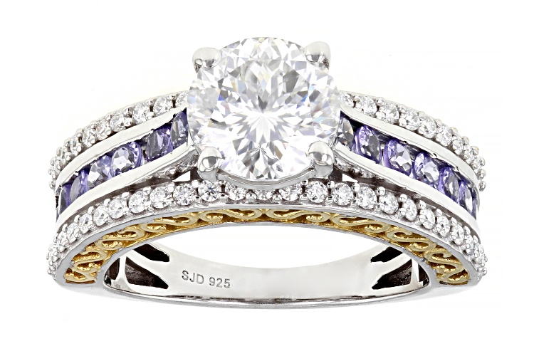 Pre-Owned MOISSANITE FIRE(R) 2.67CTW DEW INFERNO(TM) CUT & TANZANITE TWO TONE RING - Size 8